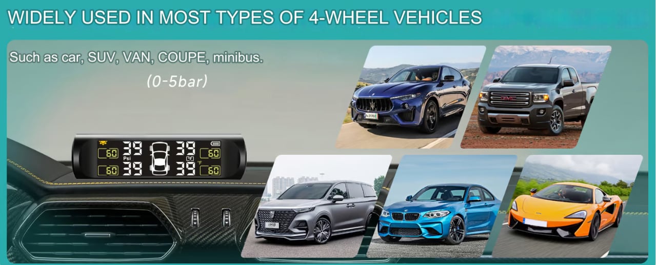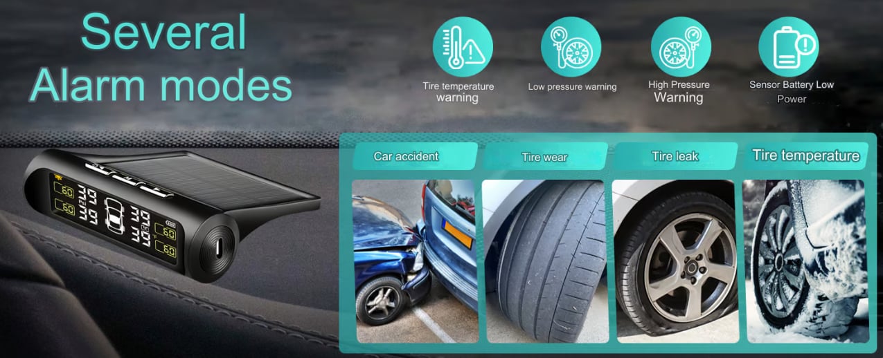 Automatic Solar Charging and USB Charging: The tire pressure monitoring system is automatically charged by solar energy and uses higher quality and longer lasting solar lithium battery panels. It can also be charged by USB when there is no sun, allowing you to focus on driving instead of the battery power of the tire pressure monitoring system.